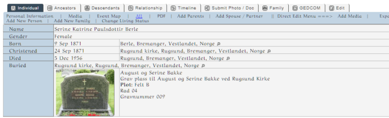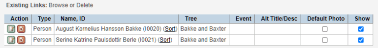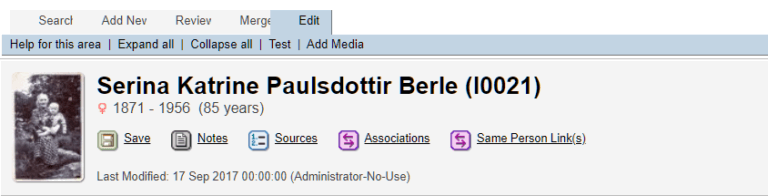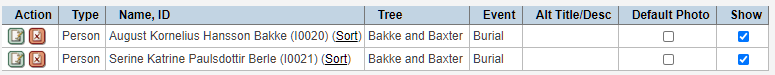Here you can also add an event to this . As this is a headstone it will be added to their burial event. You do this by pressing the edit function by there name.![]()