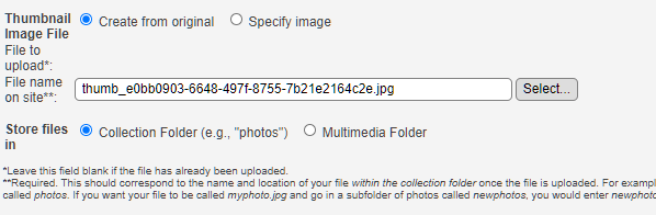 Check the thumbnails options, normaly you should be good with “Create from original” and leave the Store files to be set as Collection folder as you see below.
