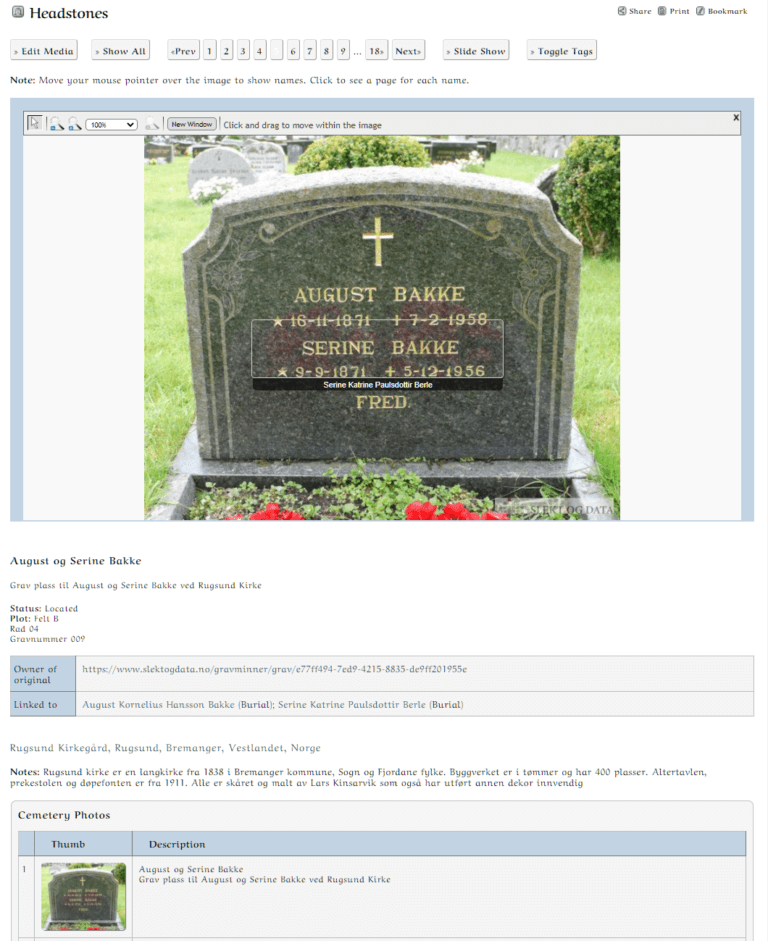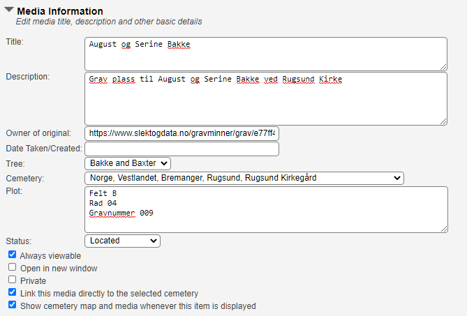In this example i have located a headstone at Slekt og Data , so a link to their page is set as owner. On your own images, you can set yourself as owner.