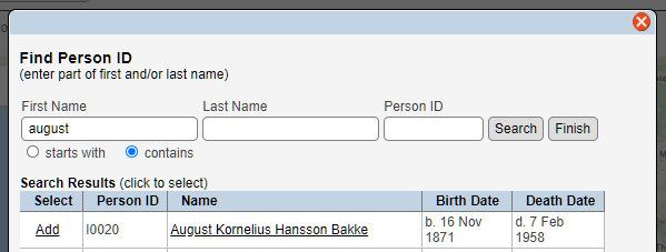 You can add more people, family etc. by changing the “type” and doing a new search.