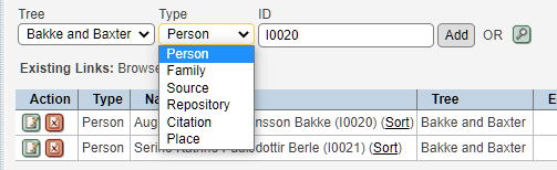 First we will look at Media Links, this is where you can add people, families , sources and more.