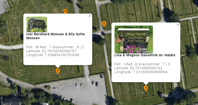 Here is an example of a cemetery with some headstones locations set up on the map.