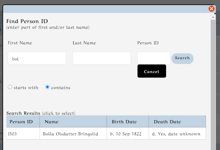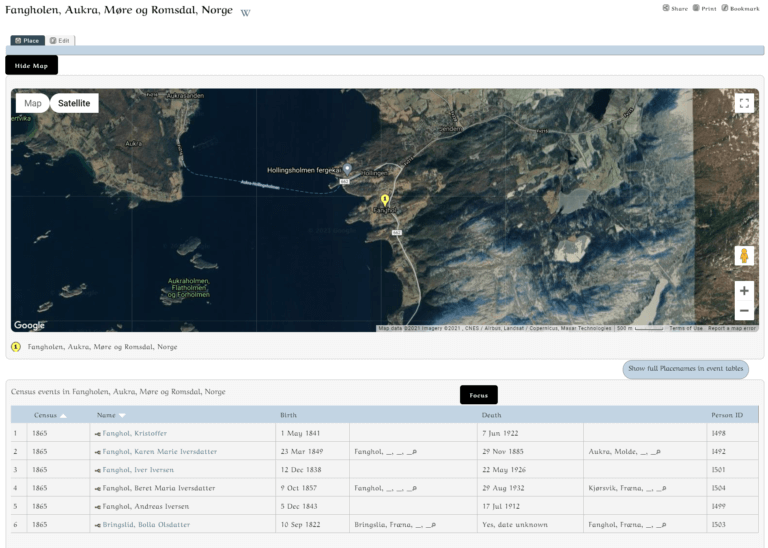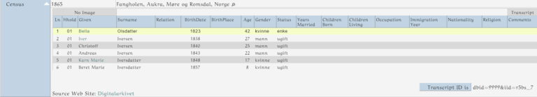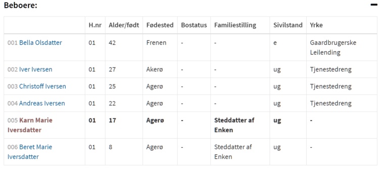 They are all linked now and you can close this window if all the data is correct. Below is the result of this census. This is what you see on each of the persons page.