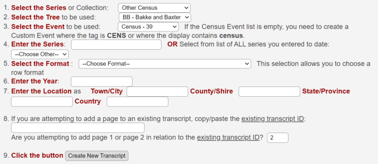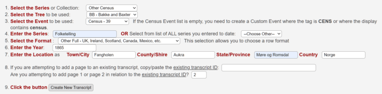 Enter the Series : Is basically just naming the transcription. I have called it “Folketelling. That name will be located in the drop down menu for the next time you use it.