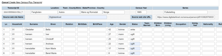 There are several kinds of Census that can be added. most common is the count ups. I will show an example of adding a “Folketelling” from 1865.