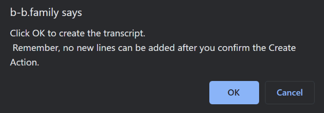 Now you press “Create New Transcript”