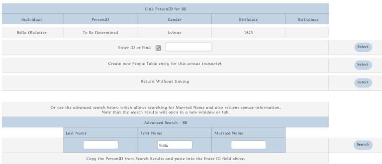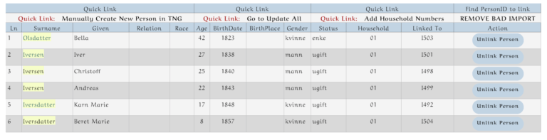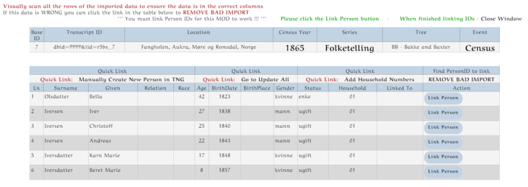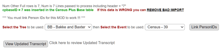 If all is good then you will start linking the person ids to this census. Press the Link Persons ID button.