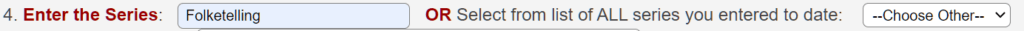 Enter the Series : Is basically just naming the transcription. I have called it “Folketelling. That name will be located in the drop down menu for the next time you use it.