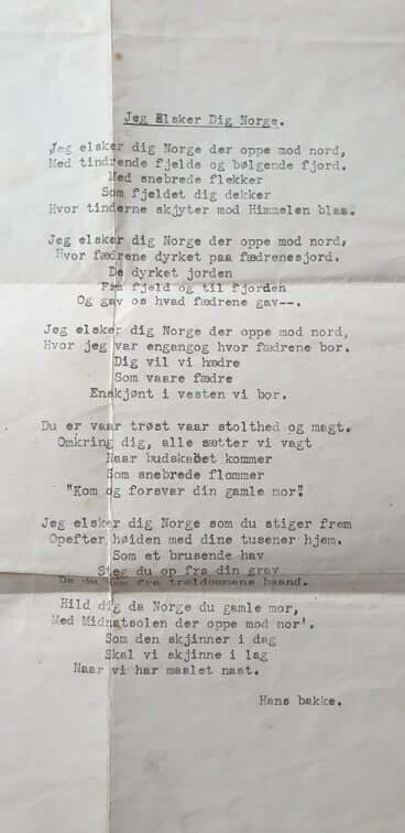 Poem written by my grand uncle Hans Bakke
