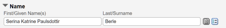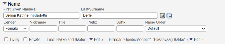 Here we will go through the “Name” section on a persons page.