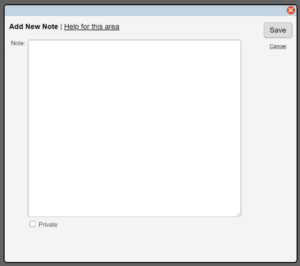 - Pop up box will appear and you can type in the notes and also set it to private or not. Then pres save. You will see a blue dot by the notes button.
