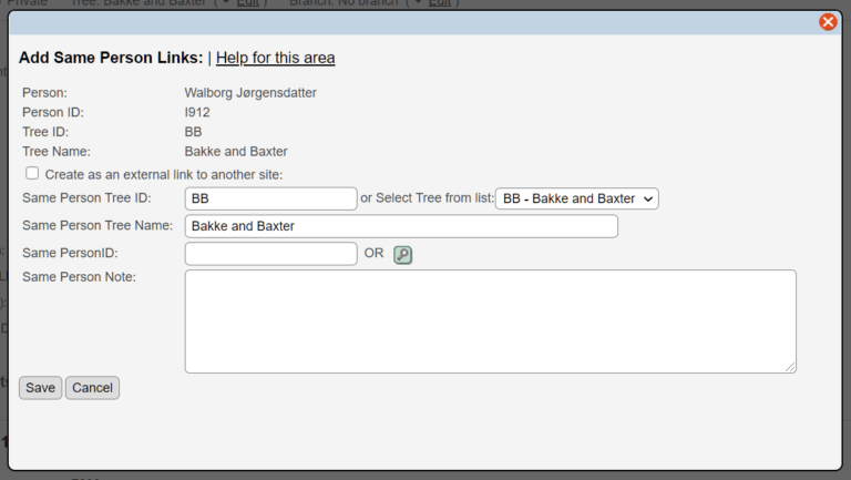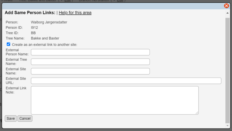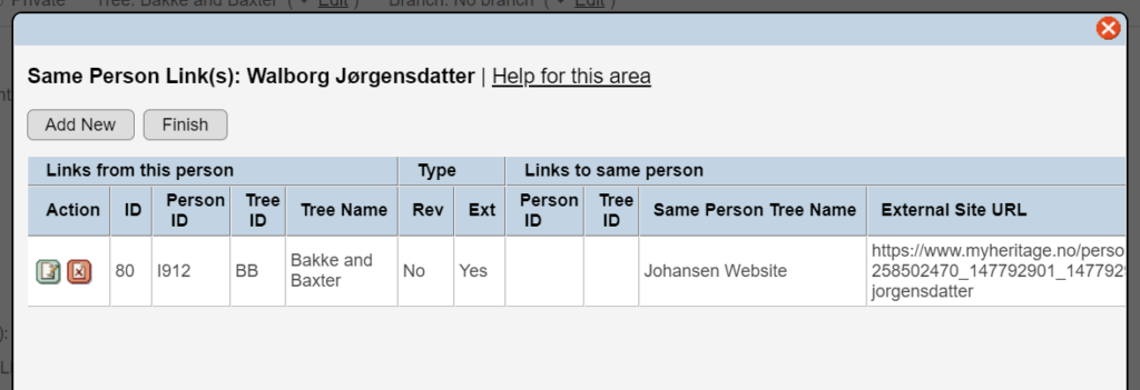 Press the “Same Person Link(s)” button and a pop up window will appear.