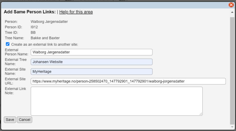 • External Tree Name : If this is from a multi tree site like Myheritage, add the name of the tree here.